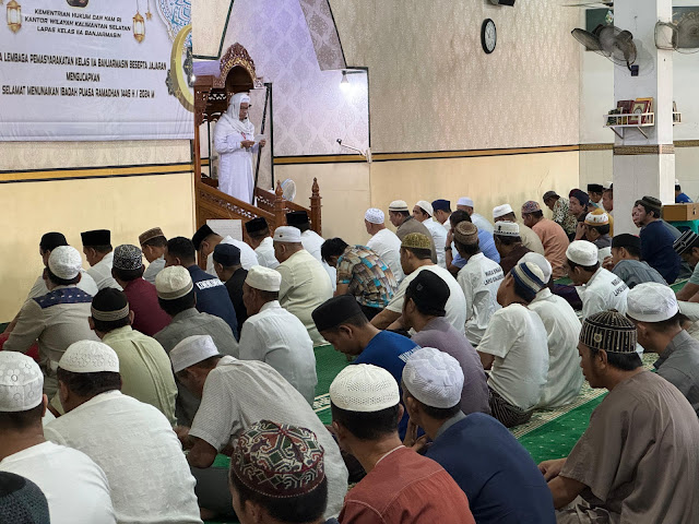 Narasipublik - Kepala Kantor Wilayah Kementerian Hukum dan Hak Asasi Manusia (Kanwil Kemenkumham) Kalimantan Selatan, Bapak Taufiqurrakhman, melaksanakan Salat Jumat di Lapas Banjarmasin.